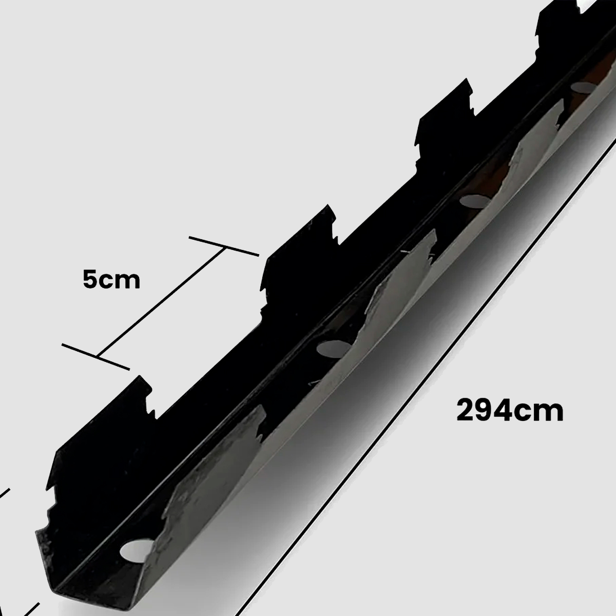 Suporte metálico para Brise WPC interno, com 2,90m de comprimento e encaixe para até 30 brises com espaçamento de 5cm. Fácil de instalar, versátil e com encaixe preciso, dispensa acabamento e garante um visual limpo e moderno para projetos residenciais e comerciais.